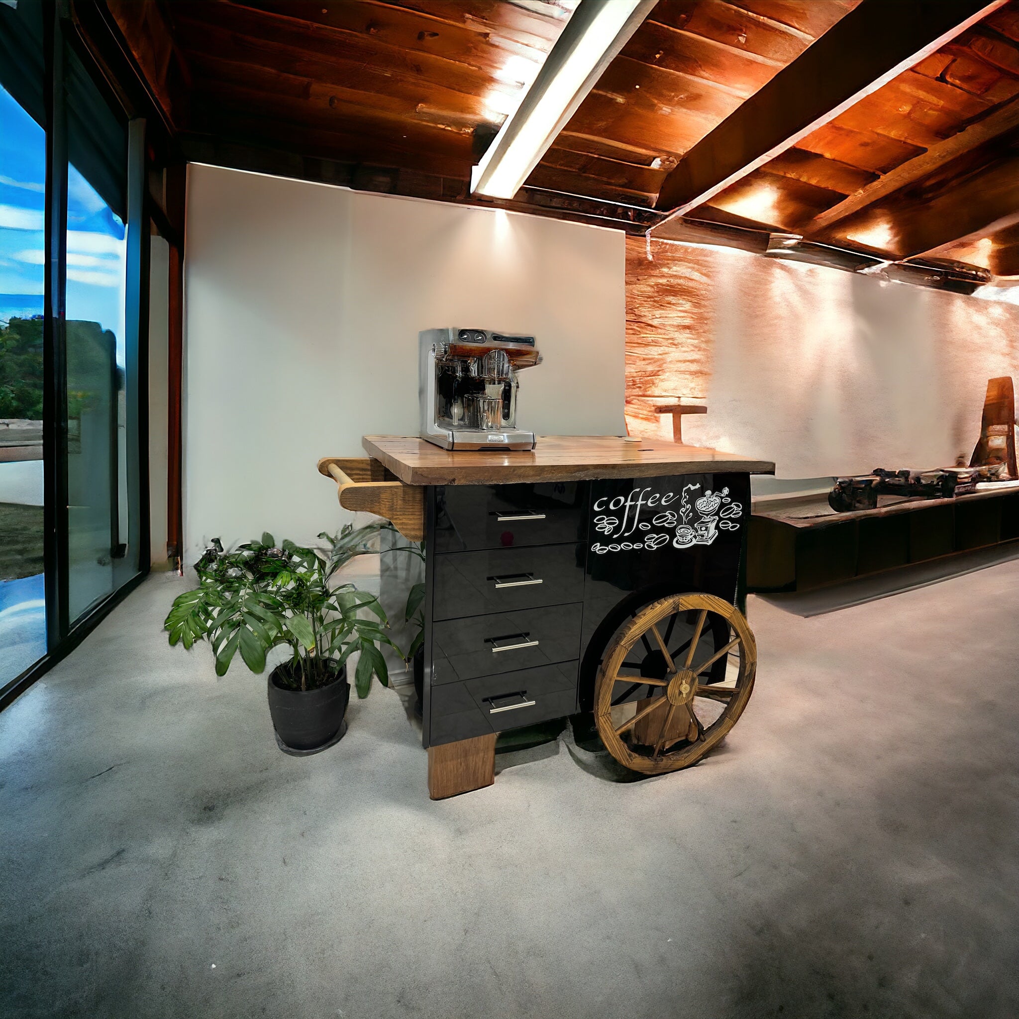 We make beautiful coffee carts & cocktail carts for your home, café, restaurant, winery etc. They are a statement that create a beautiful vibe and attract lots of attention as a beautiful masterpiece.